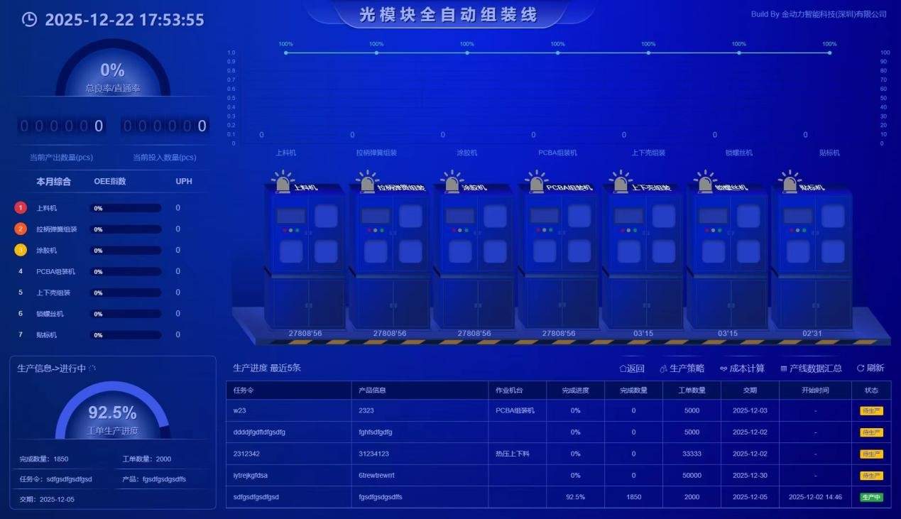 金动力此次推出的光模块自动组装线,正是针对上述行业痛点量身打造。该生产线具有三大核心特点: